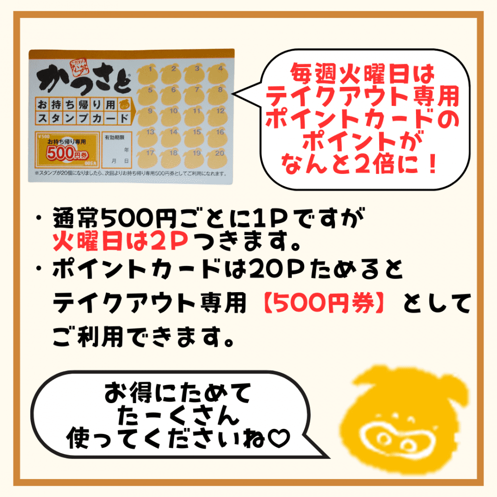 毎週火曜日はテイクアウトポイントがなんと!2倍!