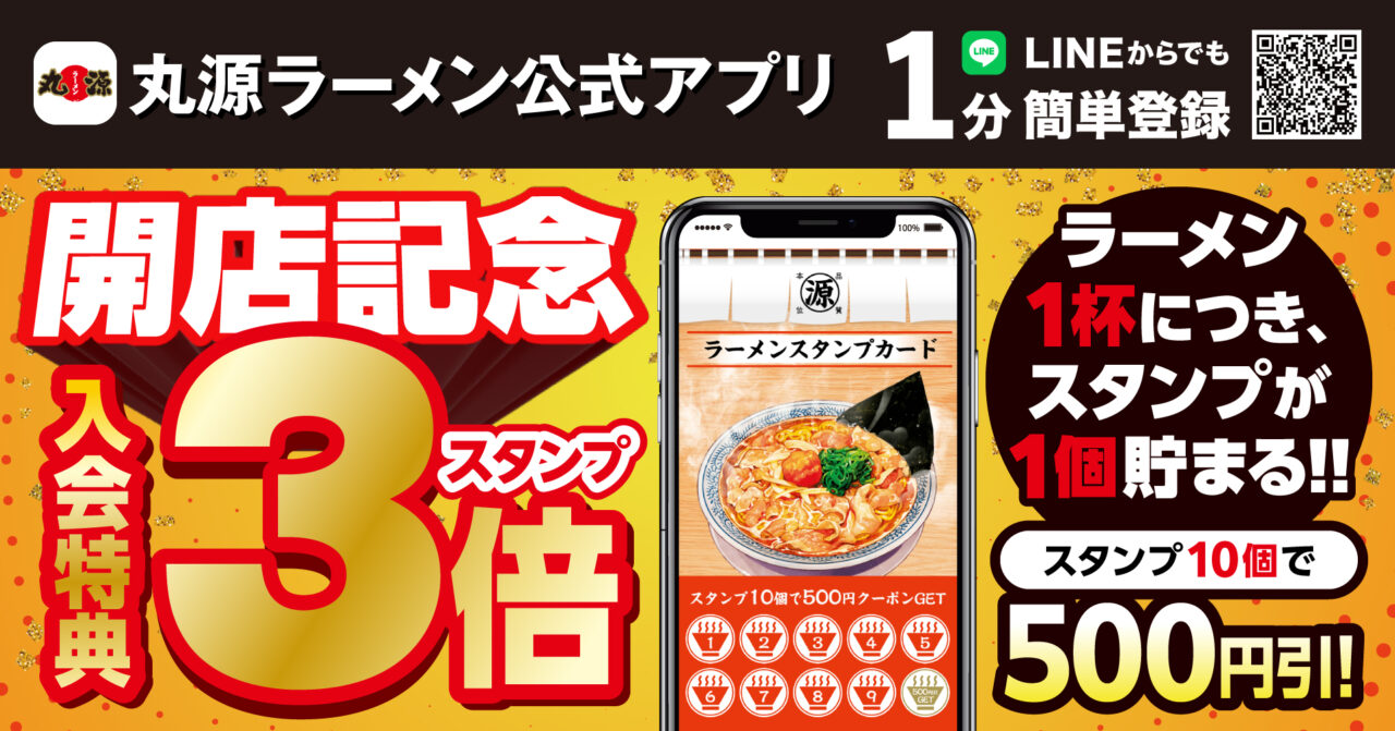 期間内に『丸源ラーメン 加古川平岡町店』でお食事された方が対象で、通常ラーメン1杯につきスタンプ1個たまるところ、キャンペーン期間中はラーメン1杯につきスタンプ3個たまるお得なイベントになっています。
