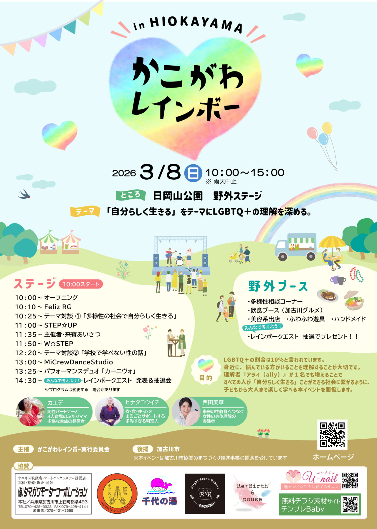 日岡山公園にて加古川市最大のLGBTQ+のイベント「かこがわレインボー in HIOKAYAMA」が開催されます。
