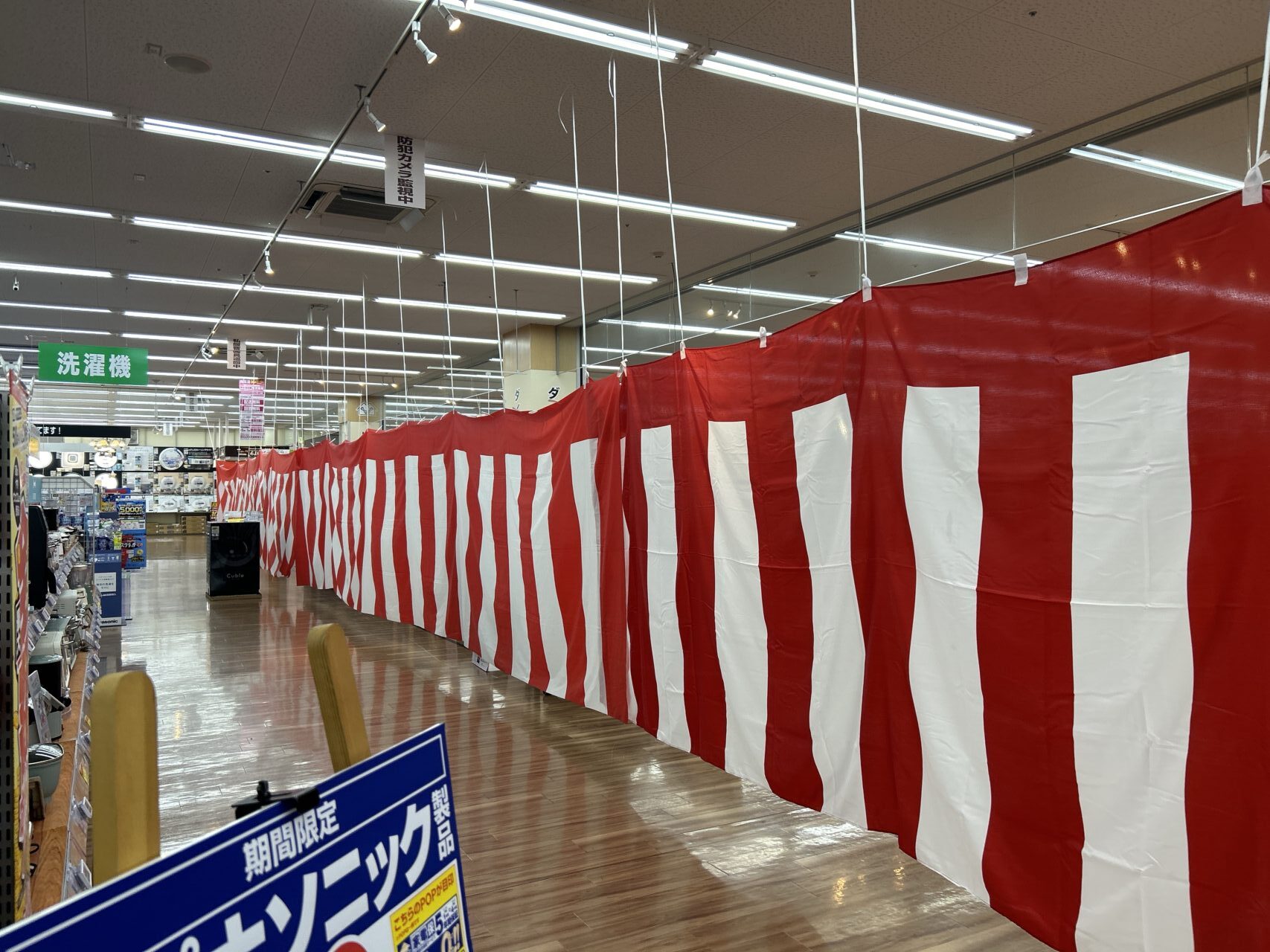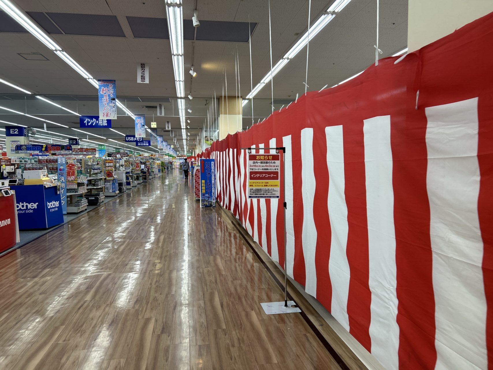 どうやら一部改装のための準備だったようです。3月、改めてお店に行ってみると、店内のインテリアコーナーが紅白幕で覆われていました。