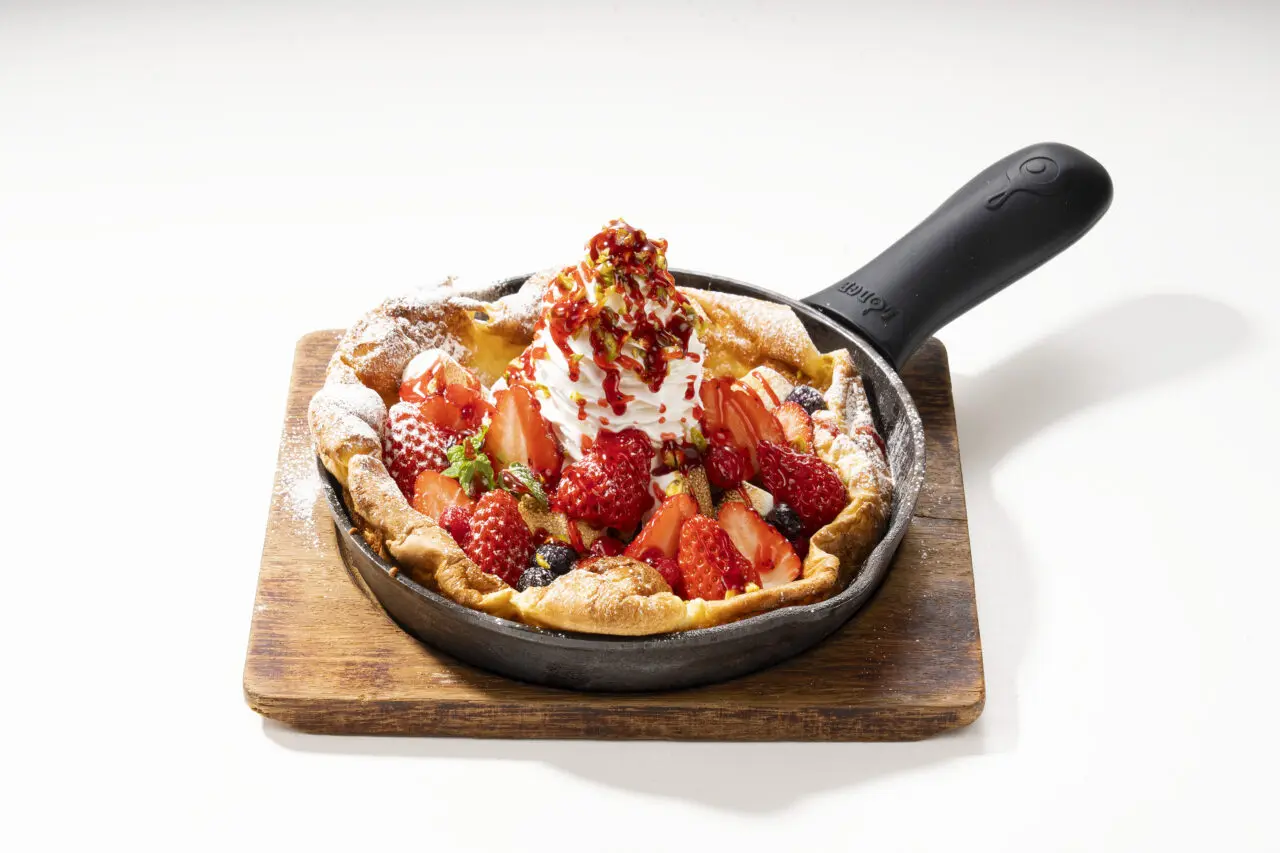 オーブンで焼き上げた熱々の生地に、冷たいクリームとたっぷりの信州いちごをトッピングされています。外はカリッ、中はモチッとした生地に溶け出したクリームといちごソースが絶妙に絡み合うみたい♪