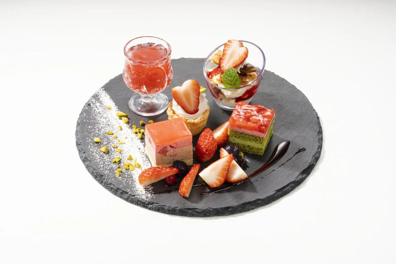 旬の信州いちごを様々なスイーツに仕立てて、華やかなワンプレートにまとめられてます。