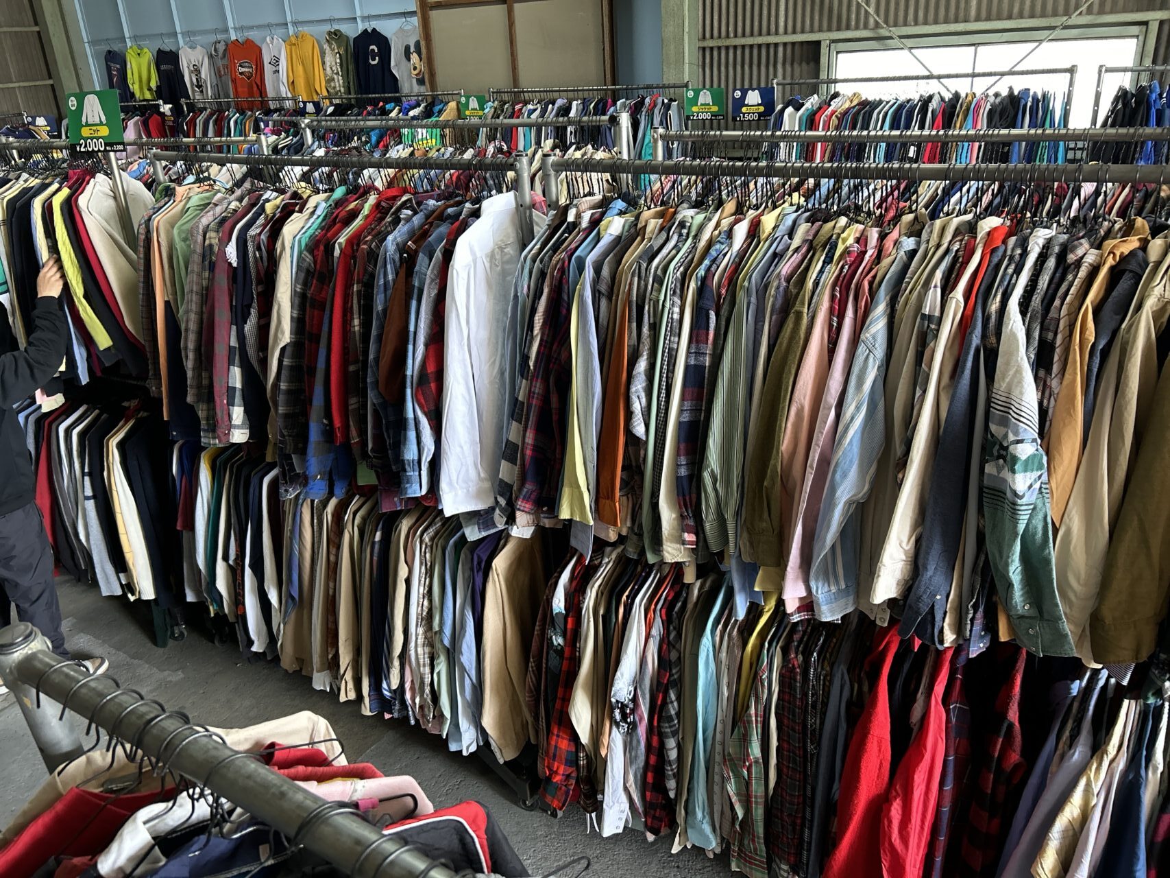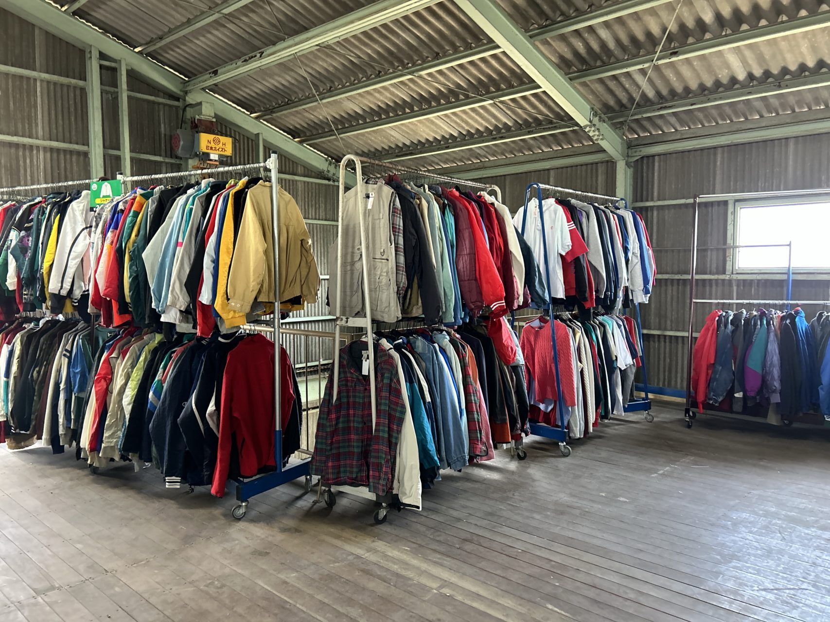 海外から直輸入された古着の卸倉庫。バイヤーさんや業者さんのためのところ・・・??ではありません!個人もOKです。店内に入ってみると、