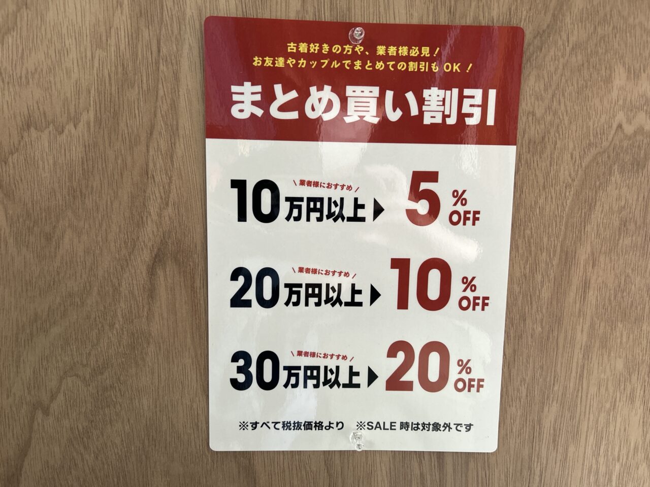古着好きの方や業者さん必見、税込10万円以上の購入で割引もあり!