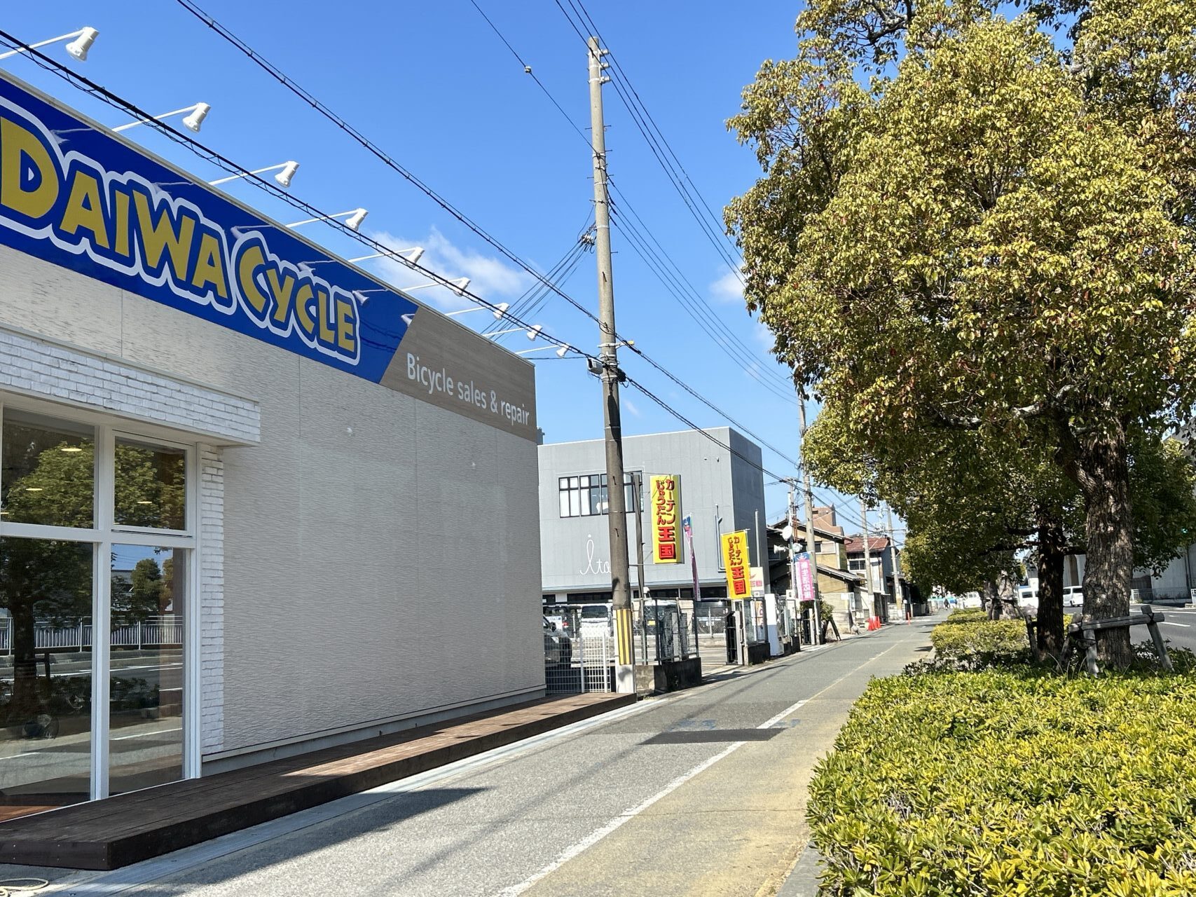 自転車専門店「DAIWA CYCLE」です。以前ここには、こども写真城スタジオアリス加古川店がありました。