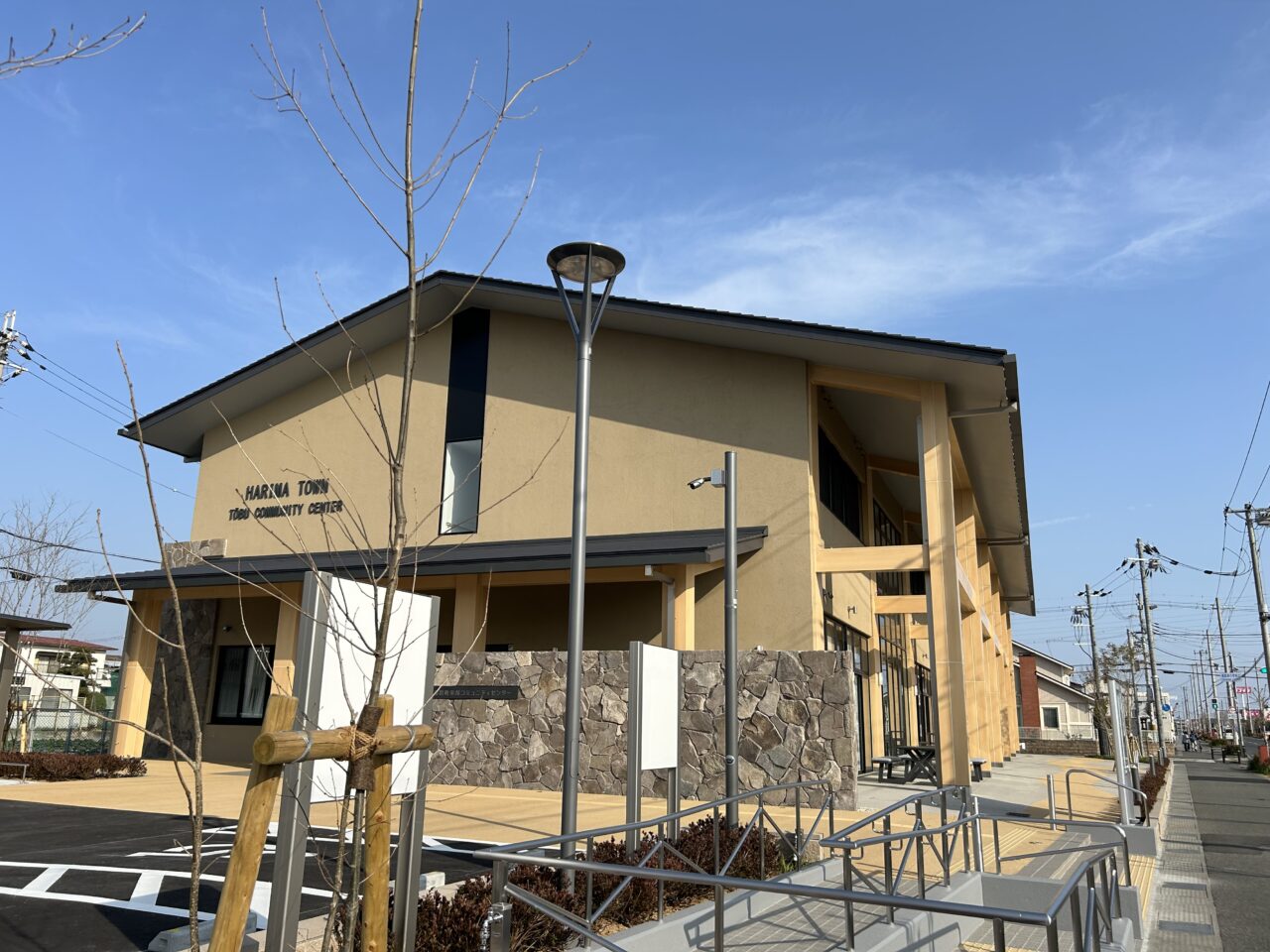 壁面には英語でHARIMA TOWN TOBU COMMUNITY CENTERと表記されています。グランドオープンするのは2026年4月6日(月)。一足早く、今週末はオープニングイベントが予定されていますよ〜!