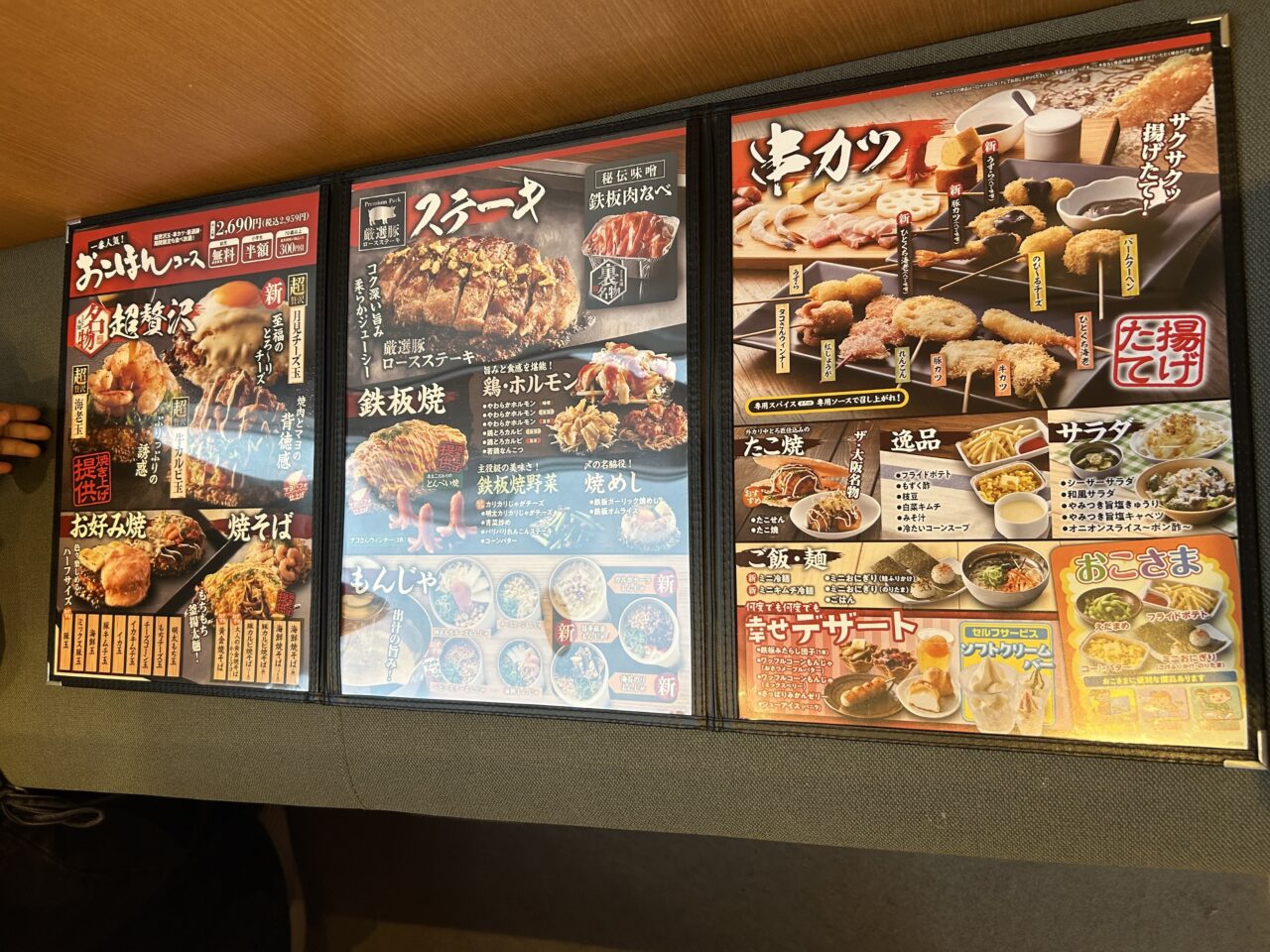 お好み焼・串カツが食べ放題のお店です。