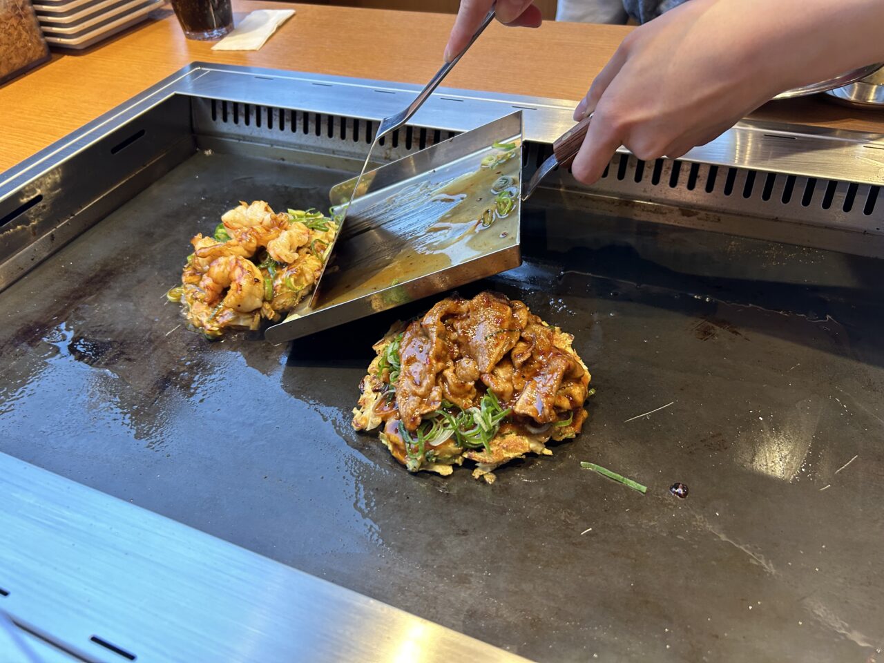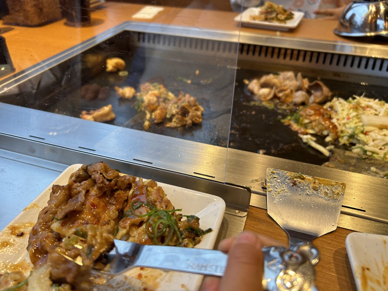具材が届き、鉄板で自分で焼くお好み焼きがあれば、