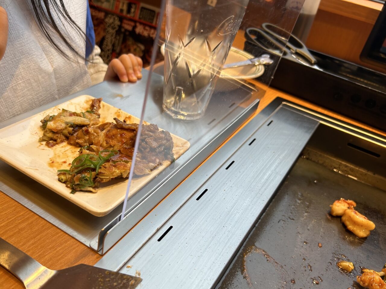 今回、幼児連れで訪れたお好み焼本舗。どうしても目の前に鉄板があると火傷が心配になるものですが、店員さんに提案してもらったのがこちら。