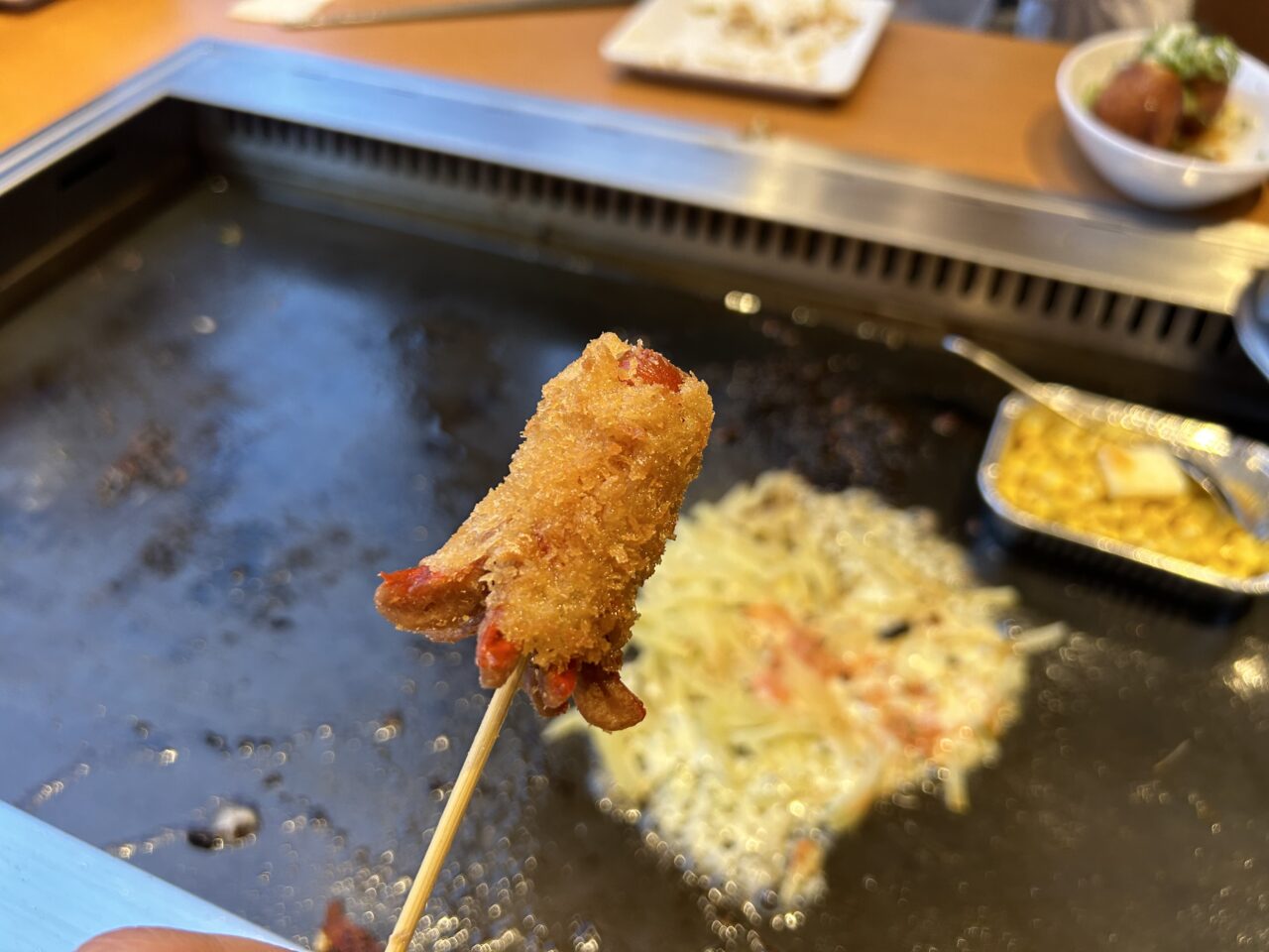 今回、幼児連れで訪れたお好み焼本舗。どうしても目の前に鉄板があると火傷が心配になるものですが、店員さんに提案してもらったのがこちら。