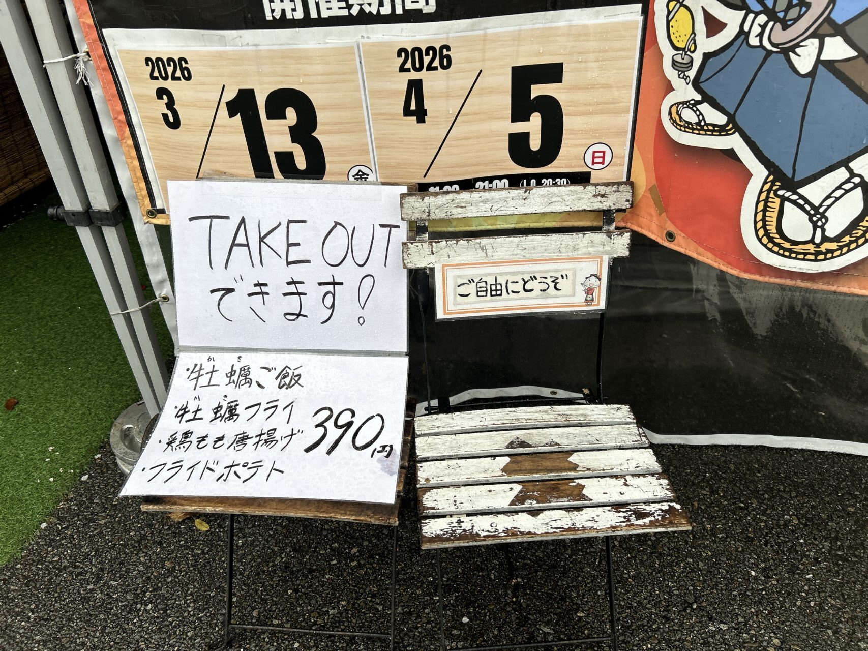 2026年3月13日(金)から始まった出張カキ小屋 牡蠣奉行は4月5日(日)が最終営業日。