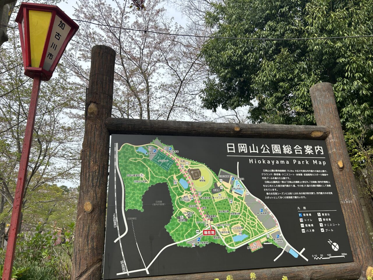 2026年4月12日(日)、桜満開の時期が過ぎてもまだまだ大勢の花見客で賑わう日岡山公園でした。